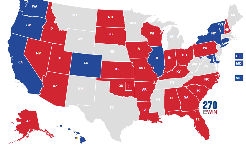 Which brings me to the predictions. I Think the republicans will pick up 4 seats in the Senate: AZ, GA, NH, and NV. Virtually, all the close races will break towards republicans. The map is below.